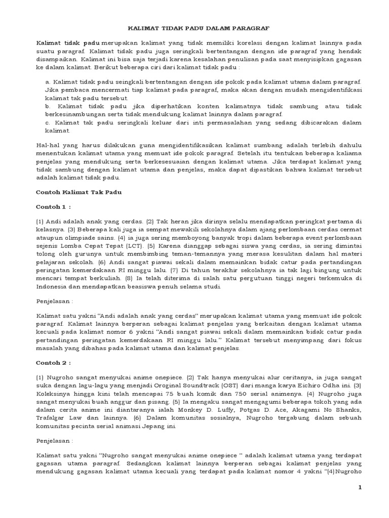 √ edu passed pass quality & scientific checked by advisor, read our quality control guidelance for more info. Kalimat tidak padu seingkali bertentangan dengan ide pokok pada kalimat utama dalam paragraf. Kalimat utama pada teks tersebut terdapat pada nomor. Kalimat yang tidak koheren seringkali juga bertentangan dengan ide paragraf yang ingin disampaikan. Agar kalimat tersebut memiliki kejelasan struktur, perlu kecermatan dapat dilakukan dengan memilih bentuk sinonimi yang paling tepat.